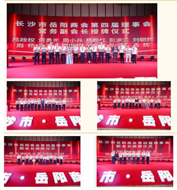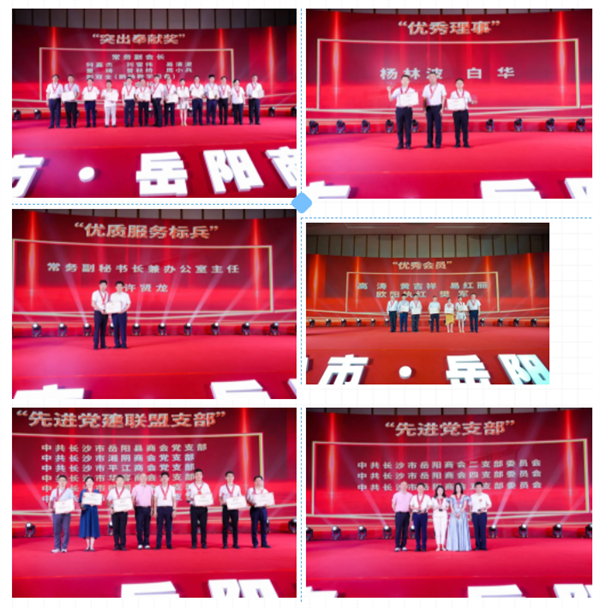 大會(huì)對(duì)“突出奉獻(xiàn)獎(jiǎng)”獲得者——常務(wù)副會(huì)長(zhǎng)何嘉杰、劉雪偉、易清波、童琦、曾秋橋、周小兵、彭雙全(弼時(shí)),副會(huì)長(zhǎng)程高純、周衛(wèi)紅、劉力,“優(yōu)秀理事”楊林波、白華,優(yōu)秀會(huì)員高濤、黃吉祥、易紅麗、歐陽執(zhí)紅、樊軍等先進(jìn)人物進(jìn)行了表彰。會(huì)長(zhǎng)李志兵、執(zhí)行會(huì)長(zhǎng)黃政偉、劉永紅、雷向紅、許青、任超文、孟秋云分別為獲獎(jiǎng)人員頒獎(jiǎng)。長(zhǎng)沙市商協(xié)會(huì)黨委書記張明剛、長(zhǎng)沙市岳陽商會(huì)黨委書記、會(huì)長(zhǎng)李志兵共同為“支持岳商黨建聯(lián)盟先進(jìn)黨支部”——長(zhǎng)沙市岳陽縣商會(huì)黨支部、湘陰商會(huì)黨支部、平江商會(huì)黨支部、華容商會(huì)黨支部、臨湘商會(huì)黨支部、汨羅商會(huì)黨支部頒獎(jiǎng)。商會(huì)黨委副書記、常務(wù)副會(huì)長(zhǎng)彭波蘭為商會(huì)第二黨支部、第四黨支部、第五黨支部3個(gè)先進(jìn)黨支部頒獎(jiǎng)。