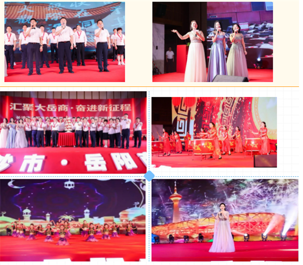 隨著熱烈的掌聲,高節(jié)奏的大會(huì)各項(xiàng)議程已經(jīng)完成,會(huì)場(chǎng)頓時(shí)充滿歡聲笑語,鏗鏘的威風(fēng)鑼鼓響徹大廳,新一屆商會(huì)領(lǐng)導(dǎo)班子一齊登臺(tái)齊聲高唱《你好•岳陽》和湖南師范大學(xué)附屬田家湖學(xué)校的孩子們表演的舞蹈《古麗》將盛會(huì)引向熱潮。伴隨著歡快的樂章,領(lǐng)導(dǎo)班子成員一齊舉杯,商會(huì)黨委副書記、執(zhí)行會(huì)長(zhǎng)黃政偉致祝酒詞,在美好的祝福聲中,大會(huì)勝利閉幕。大會(huì)開始之前,多家商會(huì)分別向大會(huì)發(fā)來祝福視頻,向大會(huì)的召開表示熱烈祝賀!在此,向他們表示衷心感謝!