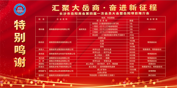 6月11日下午,長(zhǎng)沙市岳陽商會(huì)第四屆一次會(huì)員大會(huì)暨岳陽項(xiàng)目推介會(huì)在長(zhǎng)沙市湖南賓館芙蓉廳隆重召開。中國通用技術(shù)(集團(tuán))控股有限責(zé)任公司原董事長(zhǎng)、黨組書記賀同新,湖南省人大常委會(huì)原副主任楊維剛、湖南省政協(xié)原副主席劉曉、湖南省軍區(qū)原副政委萬建華、湖南省政法委原副書記李定坤、岳陽市人大常委會(huì)主任馬娜、岳陽市政協(xié)主席黎作鳳、湖南省工商業(yè)聯(lián)合會(huì)副主席漆平波、長(zhǎng)沙市委一級(jí)巡視員譚小平、長(zhǎng)沙市人大常委會(huì)副主任王瑜輝,長(zhǎng)沙市人民政府副市長(zhǎng)、市工商聯(lián)主席康鎮(zhèn)麟、湖南省人大聯(lián)工委原主任張?jiān)朴、湖南省紀(jì)委原常務(wù)副書記李宗文、湖南省建設(shè)廳原廳長(zhǎng)高克勤、岳陽市政協(xié)原主席徐新楚、湖南省市場(chǎng)監(jiān)督管理局原局長(zhǎng)、湖南省政協(xié)人口資源環(huán)境委員會(huì)副主任向曙光、湖南省人民政府原副秘書長(zhǎng)張銀橋、湖南省司法廳原廳長(zhǎng)、湖南省政協(xié)社會(huì)和法制委員會(huì)主任范運(yùn)田、湖南省委組織部原副部長(zhǎng)、人社廳原廳長(zhǎng)彭祟谷、湖南省教育廳原廳長(zhǎng)張放平、湖南省供銷總社原主任陳德禮、湖南省商務(wù)廳原一級(jí)巡視員石慧農(nóng)、湖南省經(jīng)信廳原一級(jí)巡視員殷林波、湖南省商務(wù)廳一級(jí)巡視員毛七星、湖南省公安廳一級(jí)巡視員唐向陽、湖南省高級(jí)人民法院原常務(wù)副院長(zhǎng)劉慶富、湖南師范大學(xué)原黨委書記張國驥、湖南省貿(mào)促會(huì)常務(wù)副會(huì)長(zhǎng)余炳悅、湖南稀土集團(tuán)董事長(zhǎng)徐德智、華融湘江銀行總行監(jiān)事長(zhǎng)李守耕、湖南新聞出版集團(tuán)董事長(zhǎng)楊壯、湖南省邵陽軍分區(qū)副司令員宋德瑞、湖南省檢察院原副檢察長(zhǎng)羅青、原湖南省林業(yè)局巡視員劉紹祥、原湖南省農(nóng)辦巡視員王群德、長(zhǎng)沙市警備區(qū)原司令員王忠斌、湖南省紀(jì)委原常委劉大放、江西省武警總隊(duì)原政治部主任張力強(qiáng)、湖南省有色金屬管理局巡視員王華波、岳陽市人大常委會(huì)原副主任周哲、湖南省水利廳紀(jì)委原紀(jì)檢組長(zhǎng)李金、湖南省政協(xié)常委、湖南省國資委原副主任樊建軍、湖南省委政研室原副主任李先吉、湖南省路橋公司董事長(zhǎng)方聯(lián)民、岳陽市政協(xié)原主席張治雄、湖南省政法委紀(jì)檢組長(zhǎng)何志光、湖南省民政廳原副廳長(zhǎng)李勁夫、湖南省公安廳科信總隊(duì)總隊(duì)長(zhǎng)周杰、湖南省公安廳警察學(xué)校原副校長(zhǎng)高軍、湖南省公安廳警察學(xué)校黨委原書記周學(xué)農(nóng)、湖南省公安廳原巡視員趙劍、湖南省公安廳刑偵總隊(duì)總隊(duì)長(zhǎng)敖平洋、湖南省公安廳國保總隊(duì)政委戴君明、湖南省公安廳交警總隊(duì)政委楊能、湖南省公安廳巡視員李曉葵、湖南省公安廳黨委副書記楊琪君、湖南省科學(xué)技術(shù)廳原黨組書記、廳長(zhǎng)童旭東、湖南省紀(jì)委原副秘書長(zhǎng)朱再馳、湖南省商務(wù)廳原黨組成員、紀(jì)檢組長(zhǎng)曾海平、長(zhǎng)沙理工大學(xué)原副校長(zhǎng)黎正穩(wěn)、中國電信湖南分公司黨委委員、副總經(jīng)理江乘東、湖南省民政廳原副巡視員余賢規(guī)、長(zhǎng)沙市人民檢察院原副檢察長(zhǎng)、二級(jí)巡視員姚湘中、九三學(xué)社中央委員、湖南省副主委吳金明、長(zhǎng)沙師范學(xué)院原黨委書記李學(xué)全、中國太平洋保險(xiǎn)湖南分公司副總經(jīng)理劉四新、湖南省建投集團(tuán)顧問談毅、湖南省高速公路集團(tuán)副總經(jīng)理汪小平、湖南省國家安全廳反諜總隊(duì)原總隊(duì)長(zhǎng)彭江宇、湖南省科技廳原常務(wù)副廳長(zhǎng)楊治平、湘潭市中級(jí)人民法院原院長(zhǎng)廖迪文、湖南省教育廳副廳長(zhǎng)李建國、湖南陸軍預(yù)備役師原副師長(zhǎng)魏新剛、湖南省公安廳網(wǎng)技總隊(duì)總隊(duì)長(zhǎng)劉岳兵、長(zhǎng)沙市政協(xié)原副主席張慶和、湖南大學(xué)經(jīng)管學(xué)院黨委書記李奇、湖南省武警原副司令員周四洋、湖南日?qǐng)?bào)報(bào)業(yè)集團(tuán)原副總經(jīng)理、高級(jí)編輯張效雄、岳陽市人大二級(jí)巡視員曾君華、國防科技大學(xué)教授李超、國防科技大學(xué)教授翁飛斌、湖南省雜交水稻研究中心原書記、主任羅閏良、湖南省駐深辦原副主任毛永紅、省委黨校原副校長(zhǎng)程鐵虎、岳陽市委統(tǒng)戰(zhàn)部副部長(zhǎng)、市工商聯(lián)黨組書記方衛(wèi)兵、岳陽市工商聯(lián)主席、岳陽市總商會(huì)會(huì)長(zhǎng)陳立新、長(zhǎng)沙市商協(xié)會(huì)黨委書記張明剛以及省直有關(guān)廳局、長(zhǎng)沙市有關(guān)單位、部門的領(lǐng)導(dǎo)和岳陽各縣市區(qū)黨政主要領(lǐng)導(dǎo),長(zhǎng)沙市異地商會(huì)會(huì)長(zhǎng)、秘書長(zhǎng),長(zhǎng)沙市汨羅、岳陽縣、平江、湘陰、臨湘、華容、屈原總商會(huì)、弼時(shí)商會(huì)、神鼎山商會(huì)會(huì)長(zhǎng)、秘書長(zhǎng)、會(huì)員代表,長(zhǎng)沙市岳陽商會(huì)及各分會(huì)、青創(chuàng)會(huì)