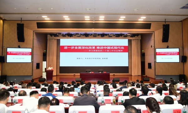 為深入學習宣傳貫徹黨的二十屆三中全會精神,第一時間向商協(xié)會黨組織書記傳達第41次市委常委會會議精神, 10月21日下午,長沙市商協(xié)會組織聯(lián)合黨委在市委黨校舉辦第三期“星商大講堂”暨第20期黨性修養(yǎng)提升專題講座。市工商聯(lián)黨組成員、副主席王婧出席會議,市商協(xié)會組織聯(lián)合黨委專職副書記黃春順主持會議。各商協(xié)會黨組織書記、副書記、近兩年發(fā)展的黨員等300余人參加學習。